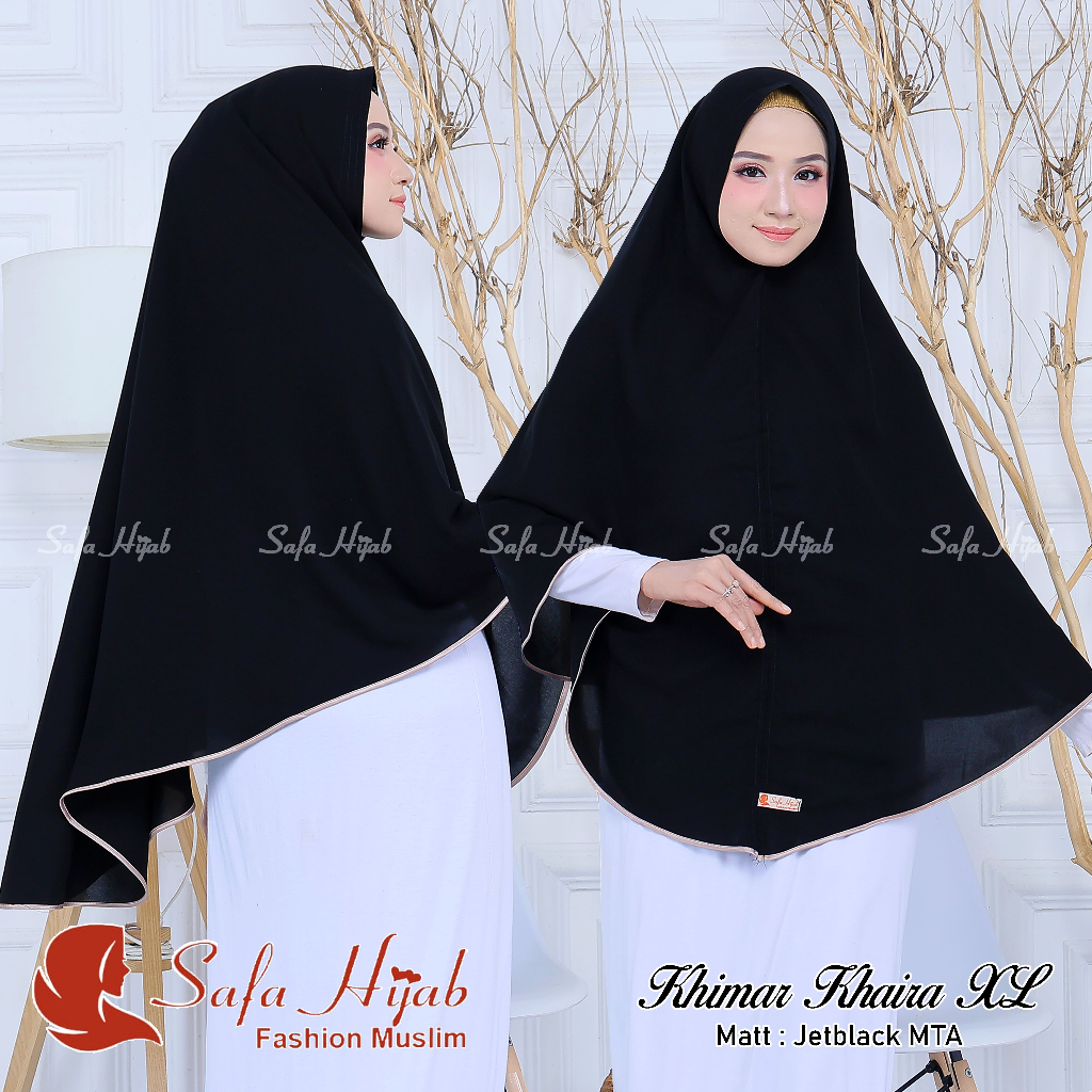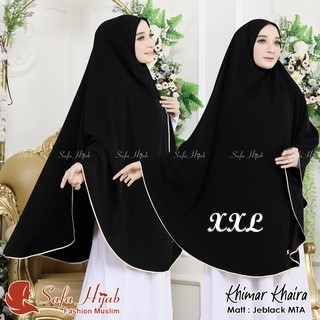 Khimar Syari Jetblack MTA Khimar Khaira list pita warna/polos super cantik pet dan non pet Jilbab Jumbo Hitam pekat Katu