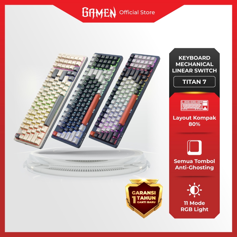 GAMEN Keyboard Gaming Mechanical Linear Switch 94 Keys RGB Light Titan 7 Original Cocok Untuk Gaming dan Kerja