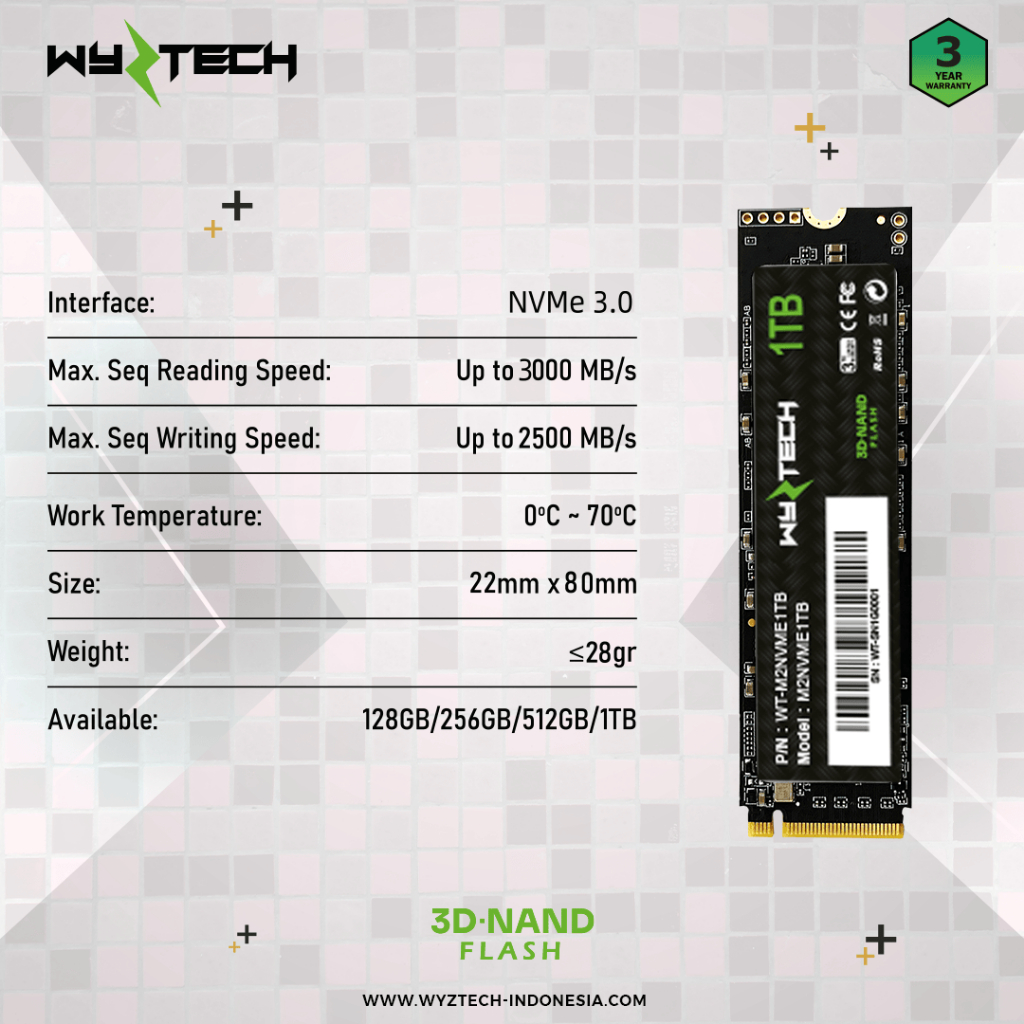 SSD M2 NVME / M.2 NVME / M2 NVME 128GB WYZTECH RESMI (GARANSI 3 TAHUN) - SSD ONLY