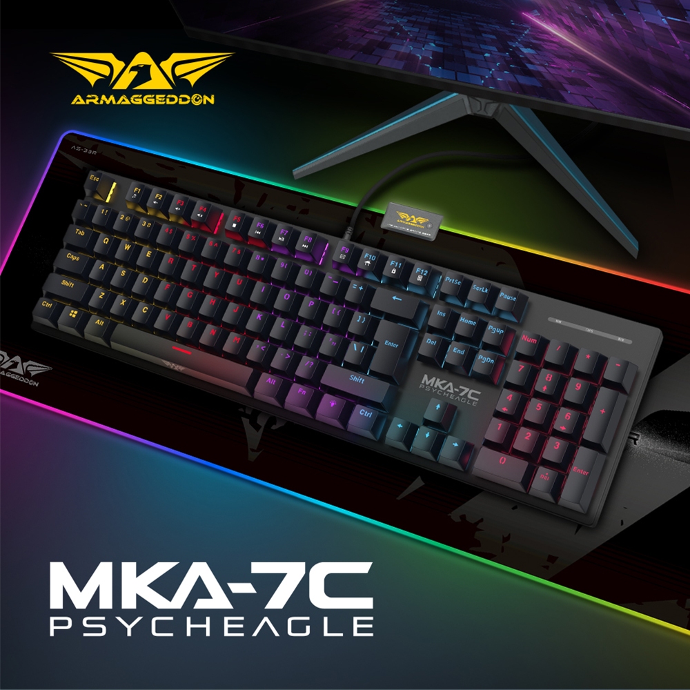 Keyboard Mechanical Gaming Armaggeddon MKA 7C Psycheagle Blue Switch Hot-Swap | 104 Full Size Keyboard | Multicolour LED Light EFX | NEW 2024