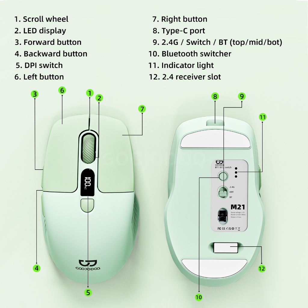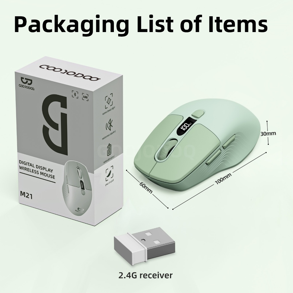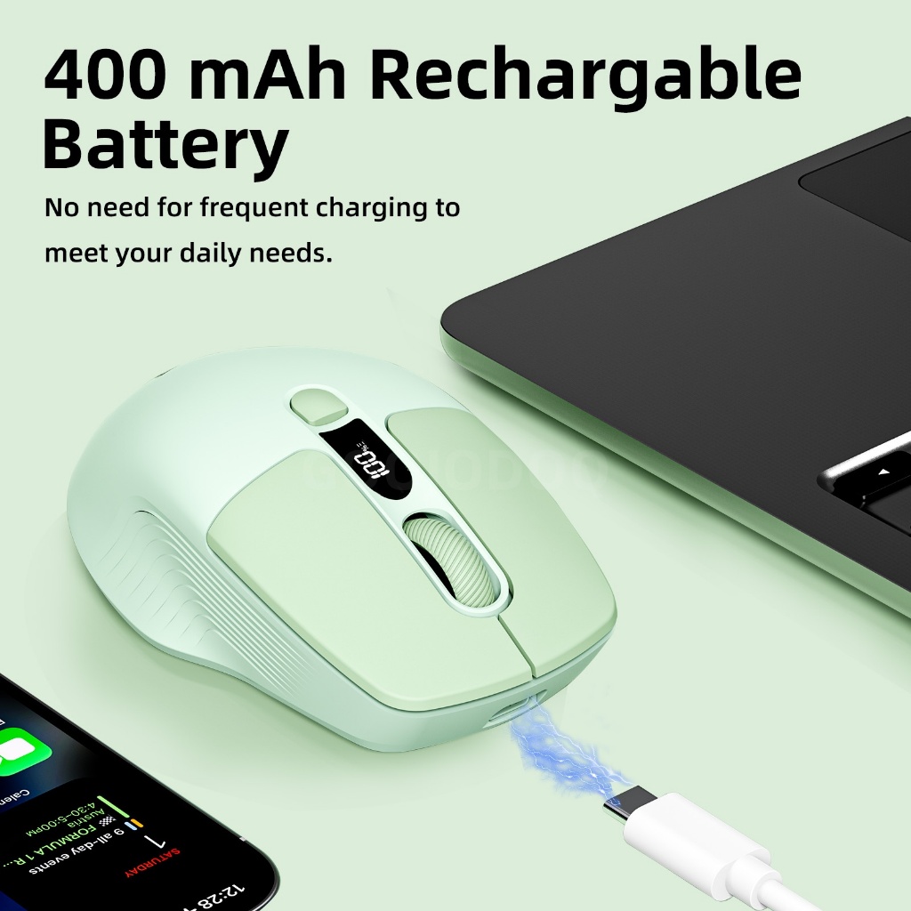 GOOJODOQ Wireless Mouse 4000DPI 2.4GHz Mouse Ergonomic Scrolling Battery Display Bluetooth Mouse