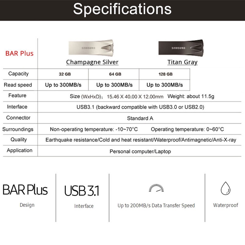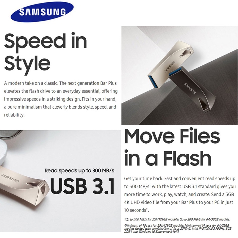 Flashdisk Samsung 32GB 64GB 128GB USB 3.1 Flash Drive BAR Plus speed up to 300MB/s