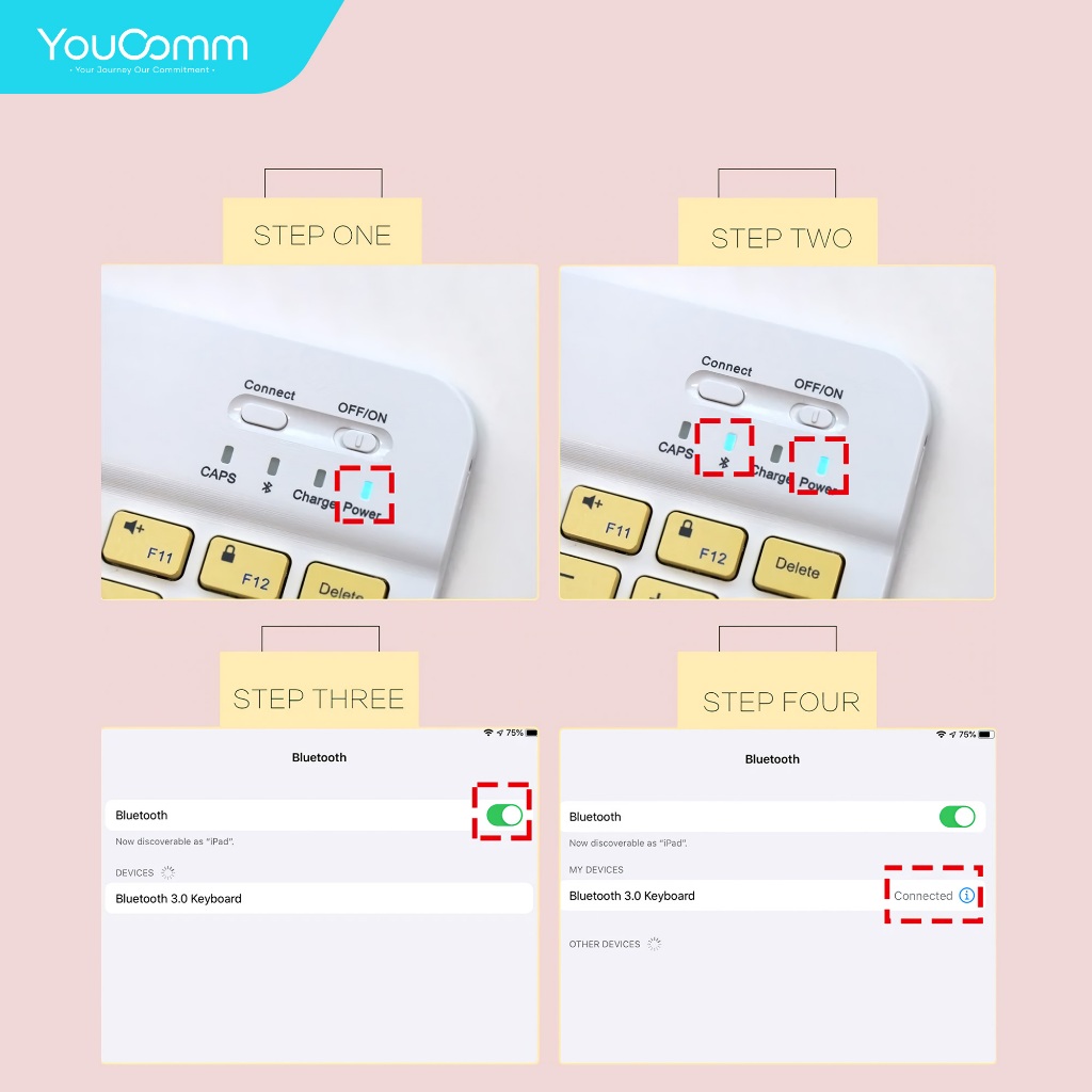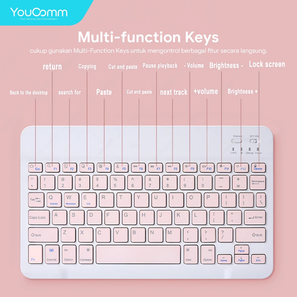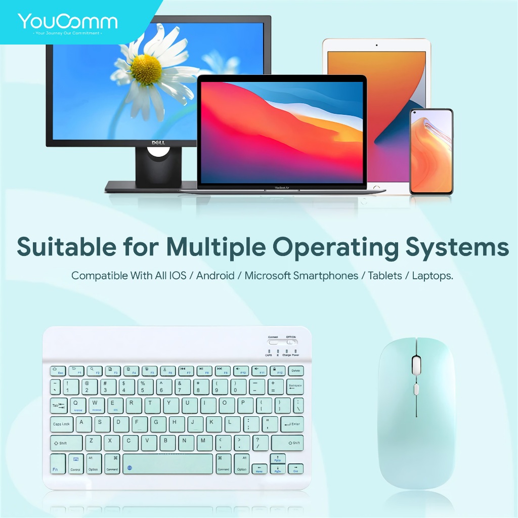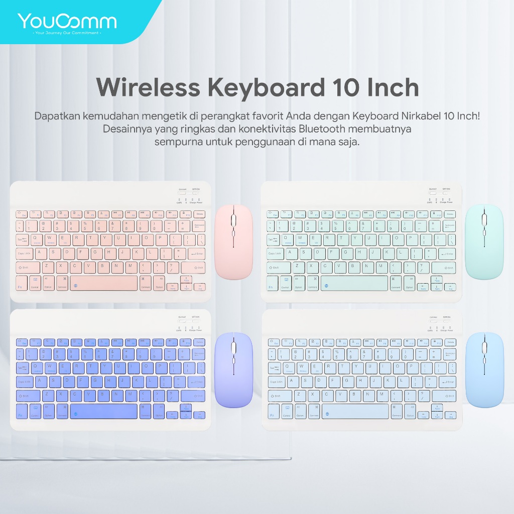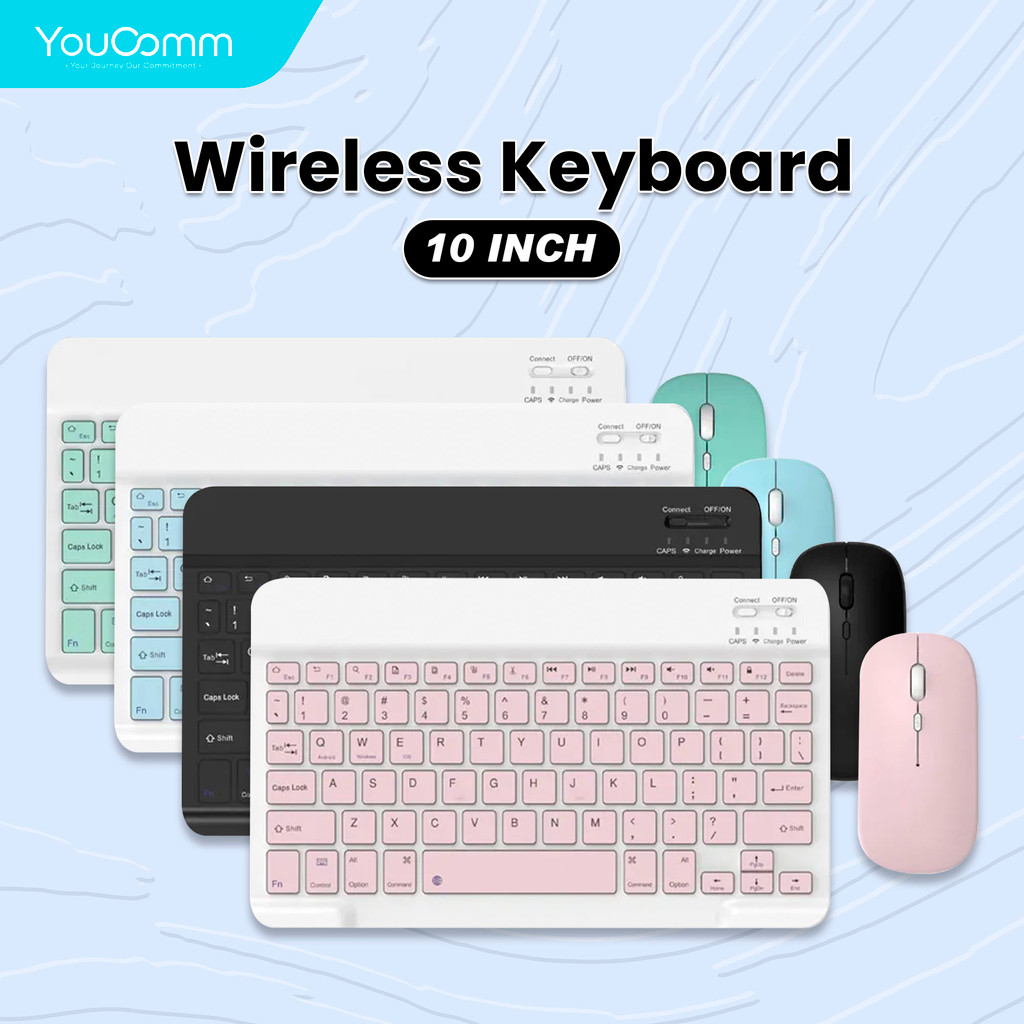 Youcomm Wireless Bluetooth Keyboard + Mouse Combo USB Office Silent Click Laptop Nirkabel Bluetooth Mini Keyboard