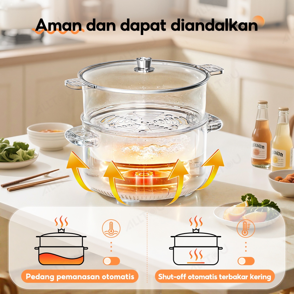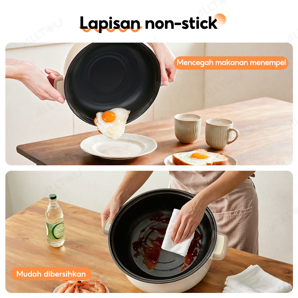 ALLTOU Panci Listrik Serbaguna 2.5L/5L Multifungsi Steamer Panci Listrik Serbaguna Anti Lengket Terjangkau
