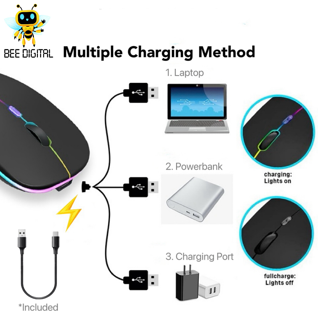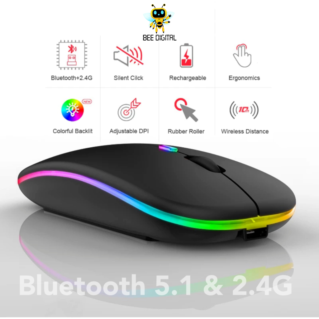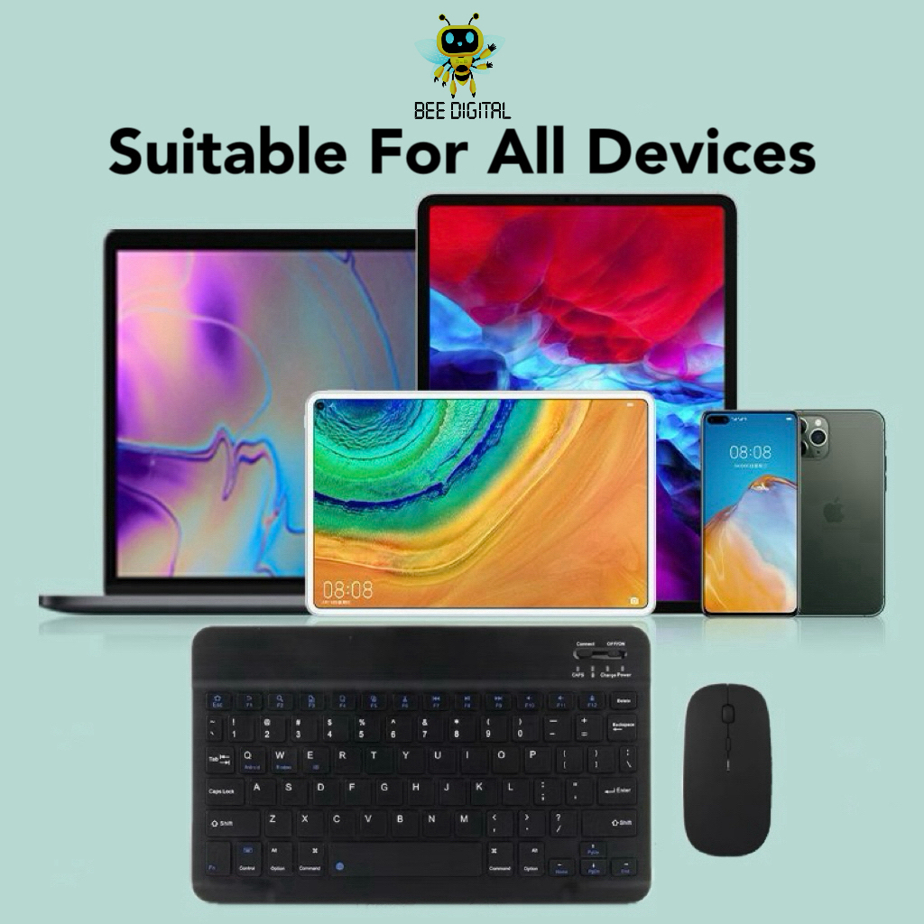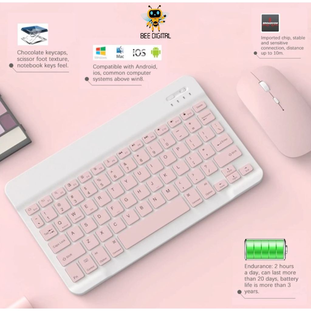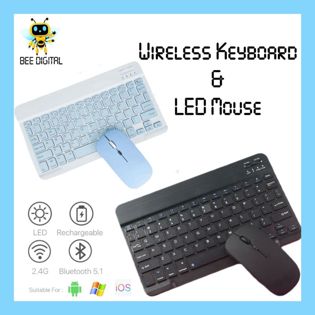 BEEDIGITAL 3in1 Bundle Wireless Set Mouse Keyboard Portable Bluetooth Lightweight Silent Click Colorful Fullset