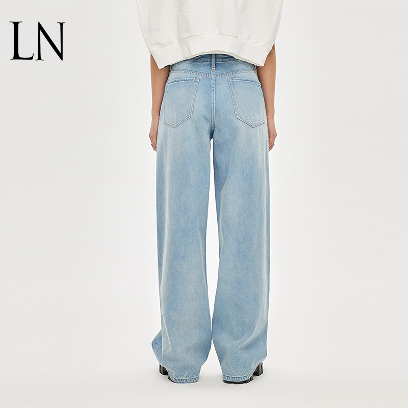 Ln.Rltr Official Store-Celana Jeans Wanita Kekinian Highwaist Kulot Wide Leg Baggy Celana Panjang Jeans Non Stretch Vint