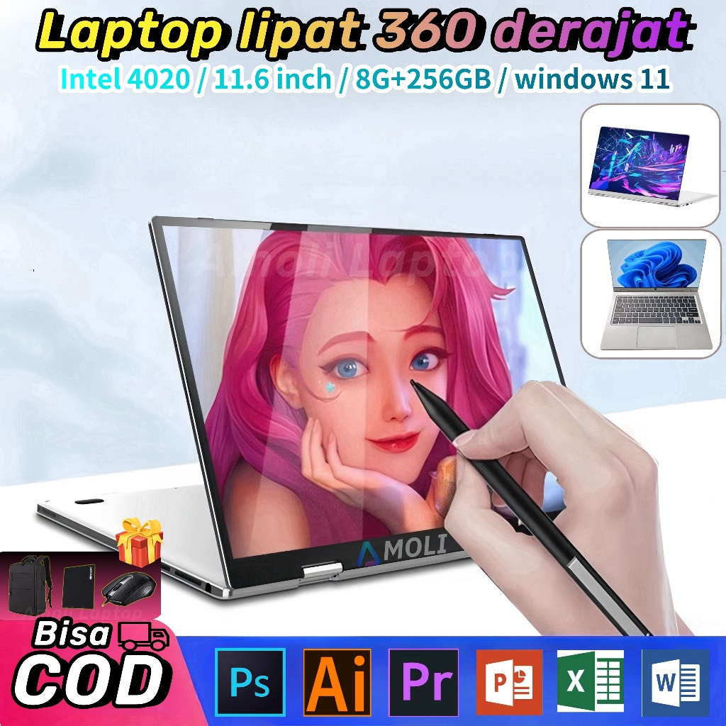 【Bisa 】AMOLI Laptop 2 IN 1 layar sentuh 360 derajat 11.6/13.3 inci windows 11 Intel N4020 Ram 8 + 256GB SSD + HHD+Garansi 1 tahun+Asuransi transportasi gratis