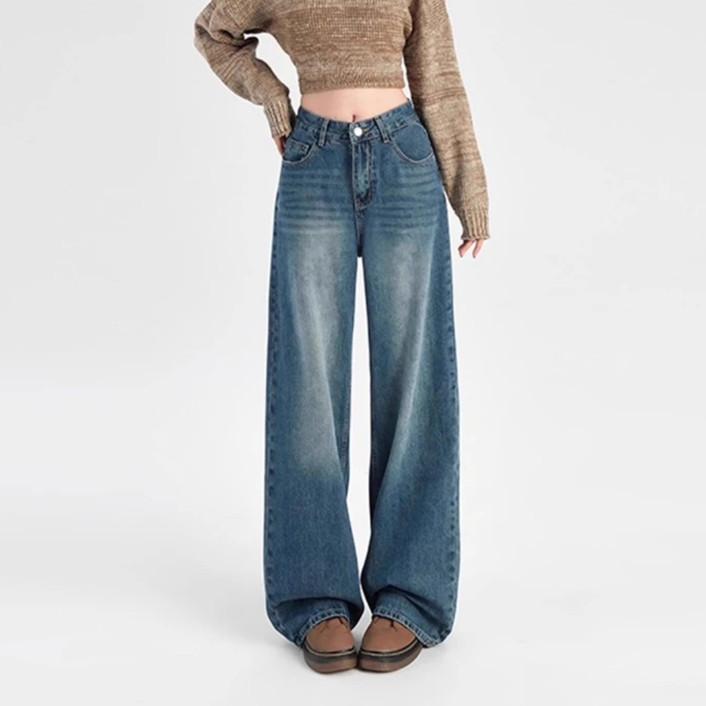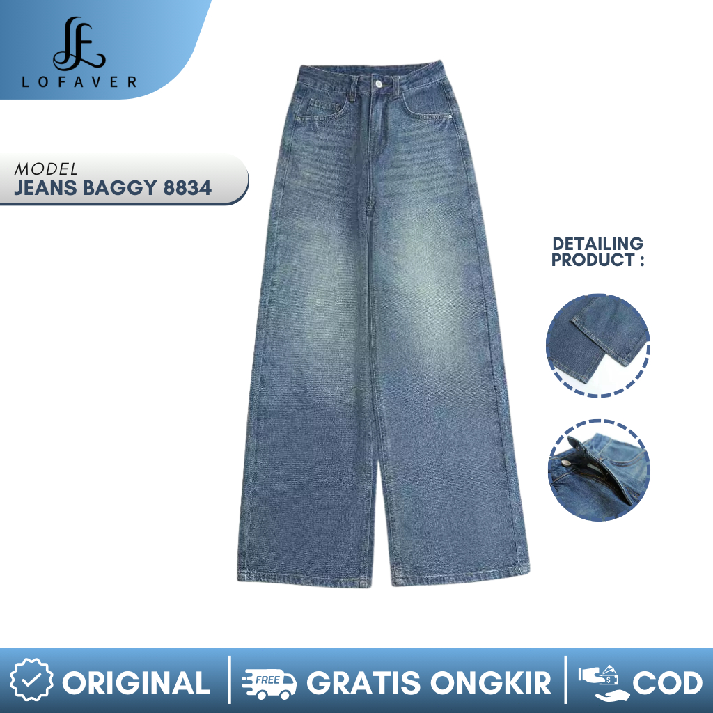 Lofaver - Highwaist Baggy Loose 8834 Celana Panjang Jeans Wanita Hangout