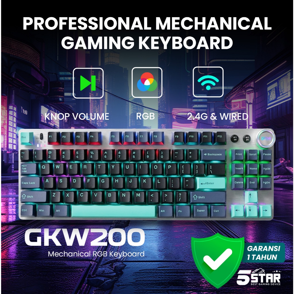 5Star Gaming - GKW200 Keyboard Mechanical Gaming Wireless 2.4G RGB Backlight