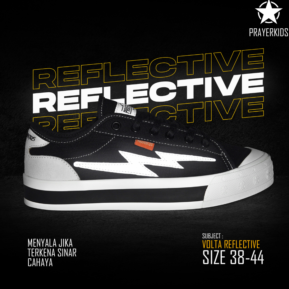 Sepatu Volt Black Reflective Prayerkids Brand Sneakers Pria wanita Unisex
