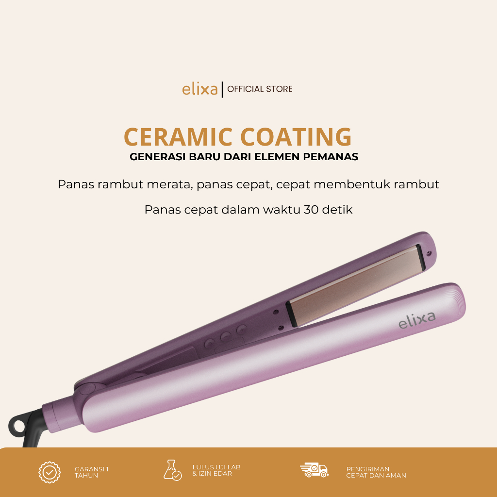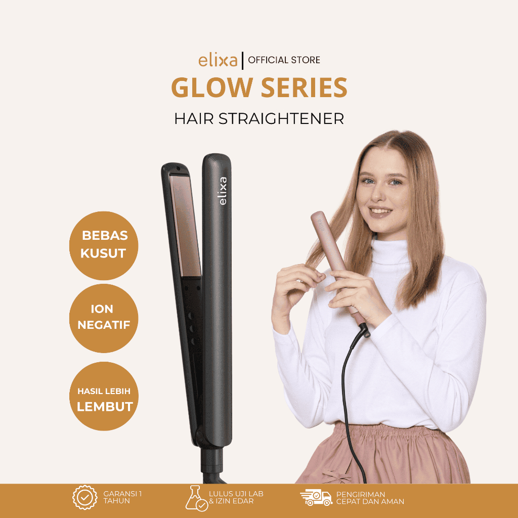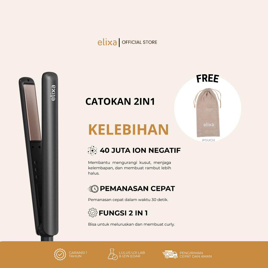 Elixa Catokan Rambut Hair Straightener Ion Negative Ceramic Glow Series 2in1 Lurus Keriting