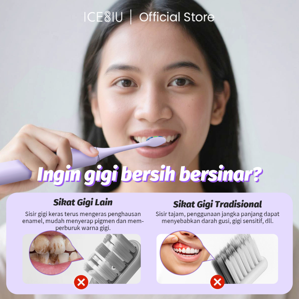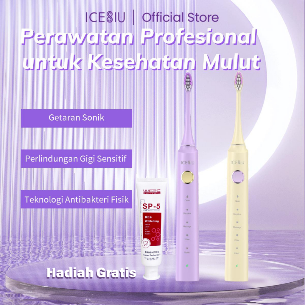 IceBiu Sikat gigi elektrik bergetar frekuensi tinggi dengan lima mode pembersihan, memutihkan gigi, tahan air IPX, membe
