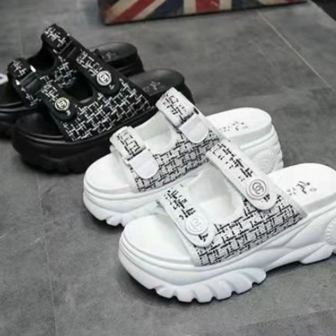 DEVOUE #064【Free Box】Sandal Wedges Hak Tebal Slip On High Heels Sandal Wedges Wanita Premium Quality Korea Sytle Tinggi 5CM