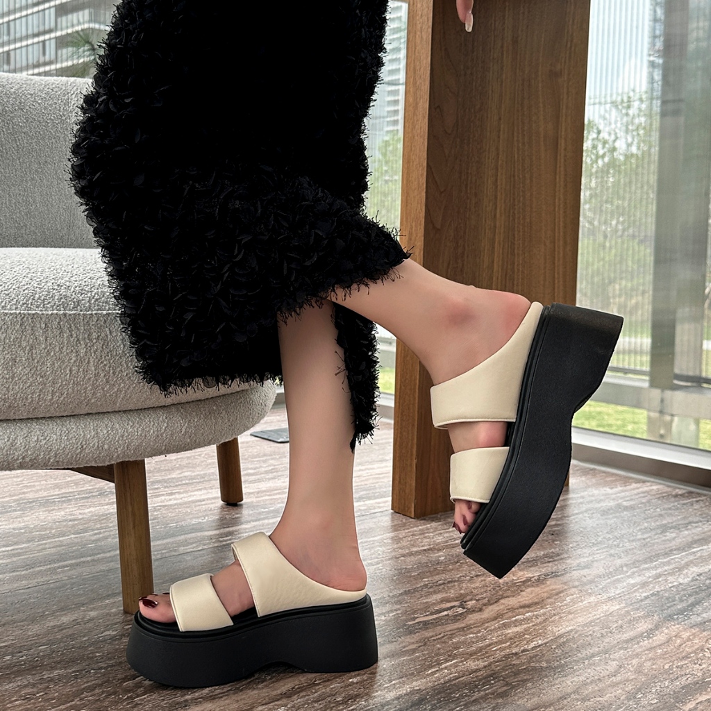 LURAD Sandal Wedges Wanita WL2475 Sendal Slip On Hak Tebal Tinggi Sandal Hangout Simple OOTD Chic