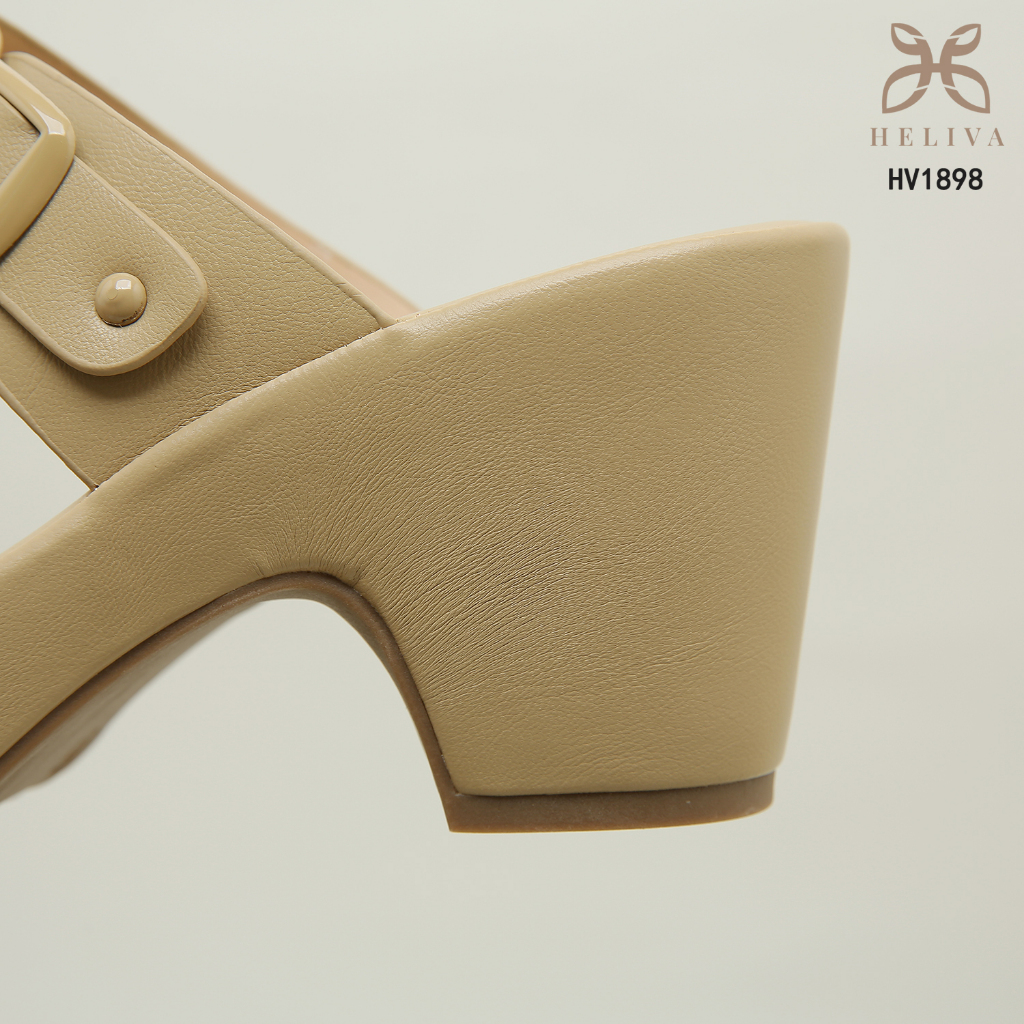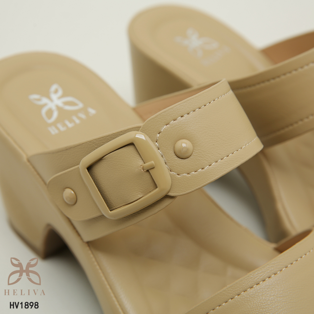 D222 LF Heliva Anya Sandal Heels Ringan Casual Wanita Slip On Bahan Kulit Sol 8cm Aksesoris Gesper HV1898