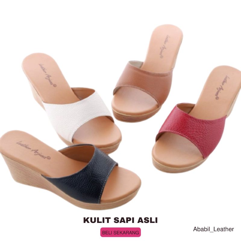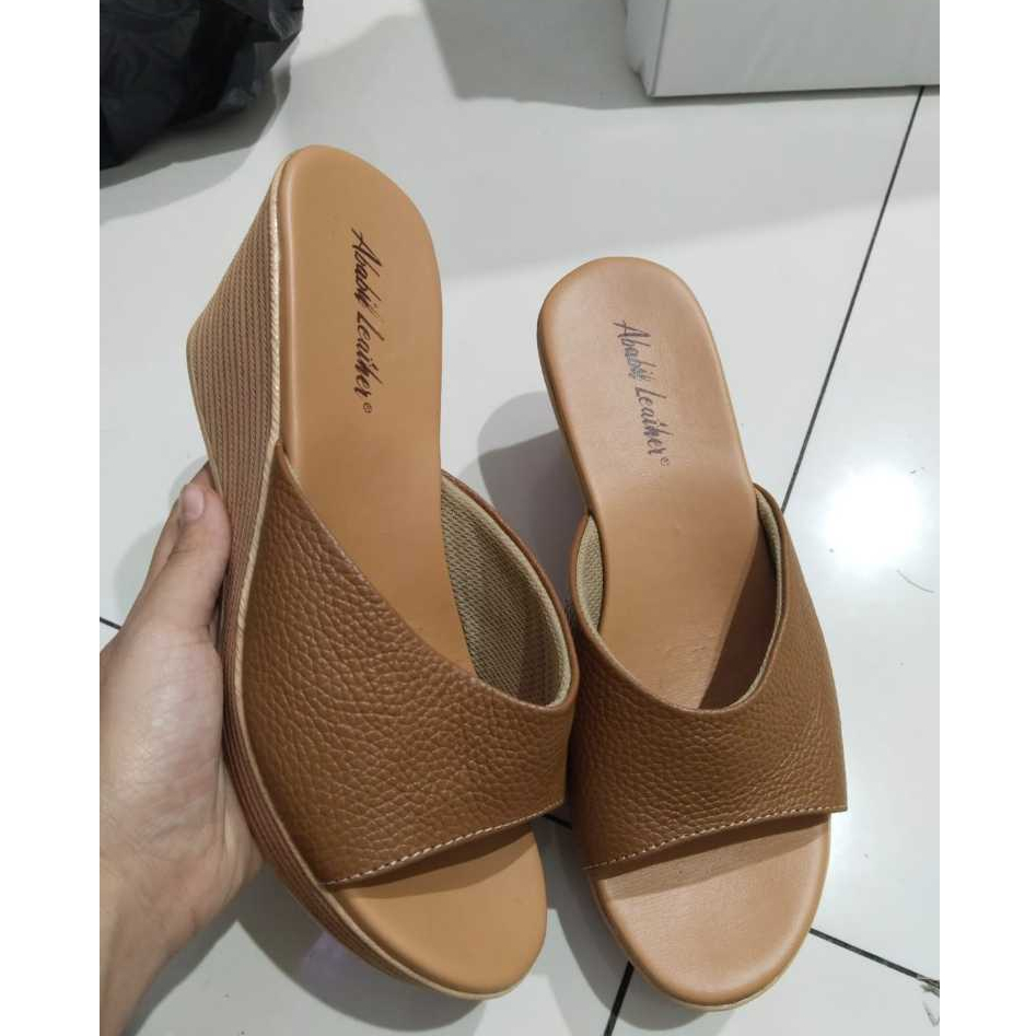 Sandal Wedges Kulit 7cm Selop Papirut Wanita Ibu Ibu Kondangan Pesta Selop Odense