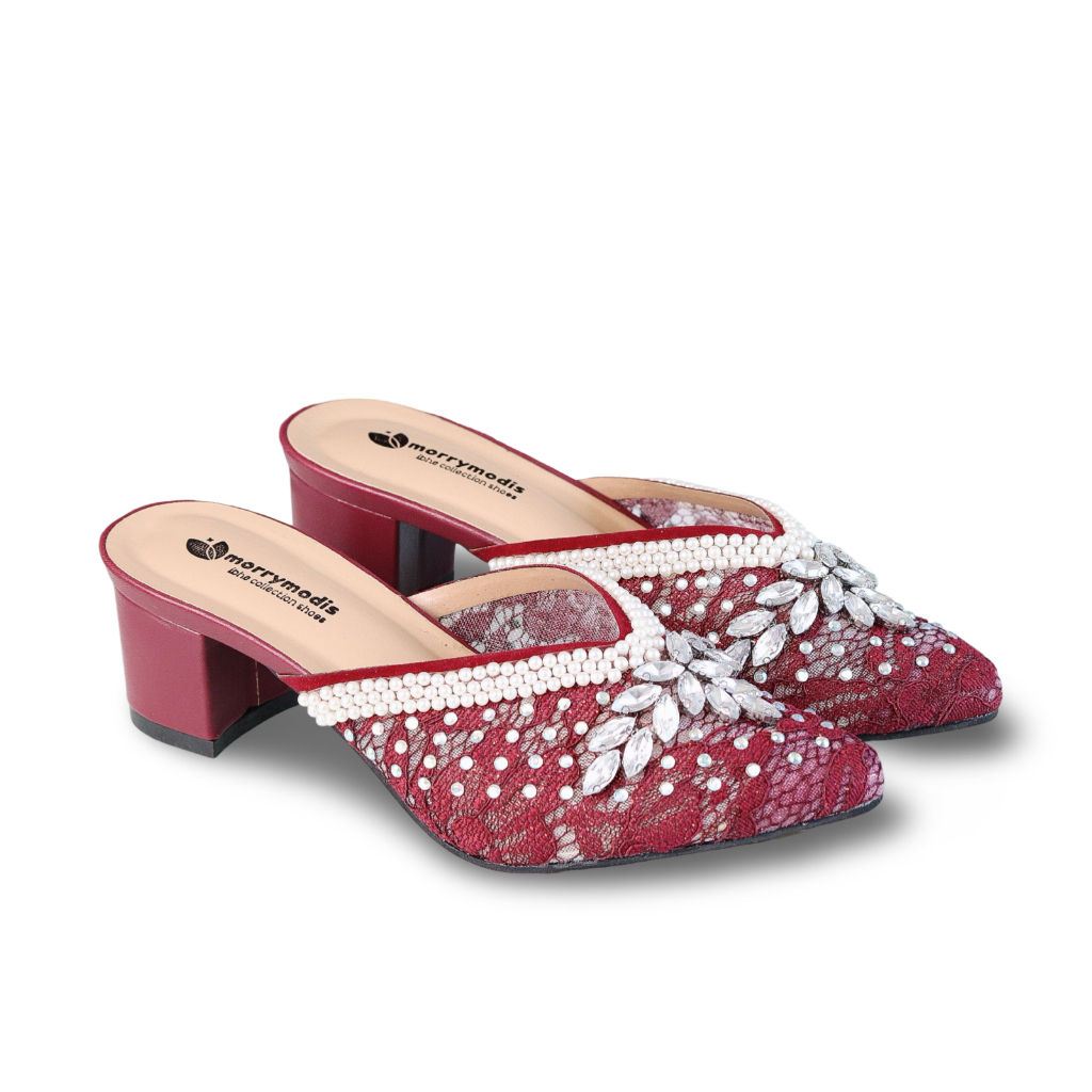 Herdian Rtwo 31 Sandal Pesta Wanita Pengantin 5cm Brukat Glitter Mewah Elegan Mule