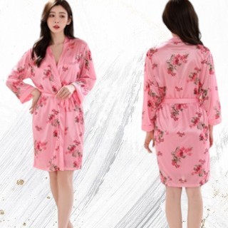 {Dejourney} Set Kimono Satin + Lingerie Wanita Pink - Pakaian Tidur Elegan dengan Motif Bunga Qrose