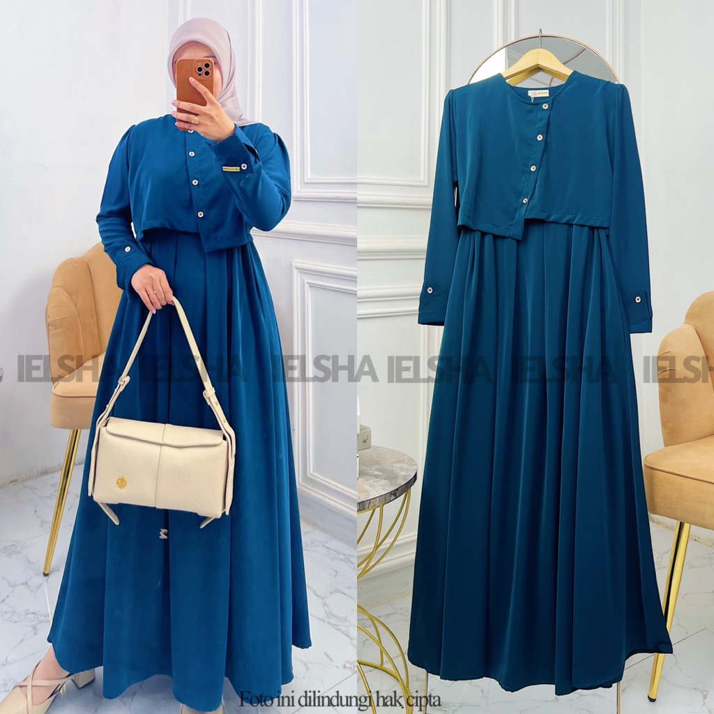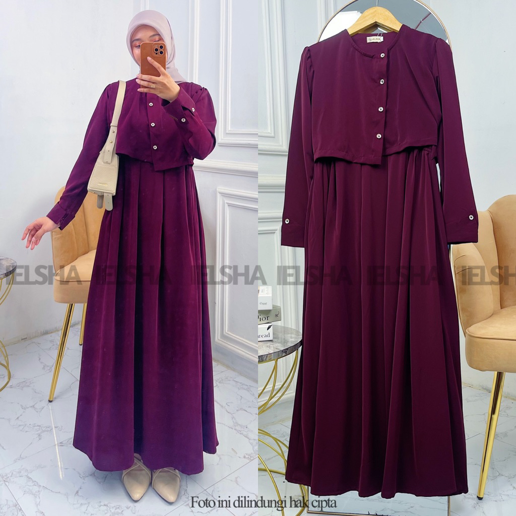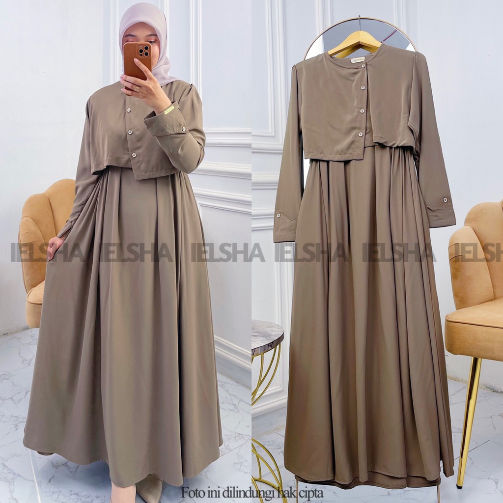 Dumma gamis by ielsha bahan marina silk anti UV gamis polos dress terbaru mewah cantik kondangan Lebaran 2026