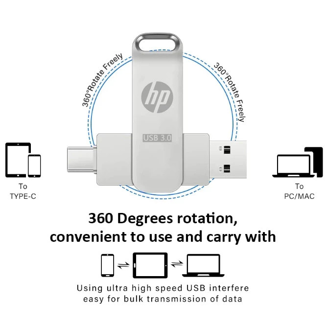 HP Flashdisk OTG Dual Drive USB3.0 + Type C 1TB/2TB Rotatable High Speed USB Flash Drive