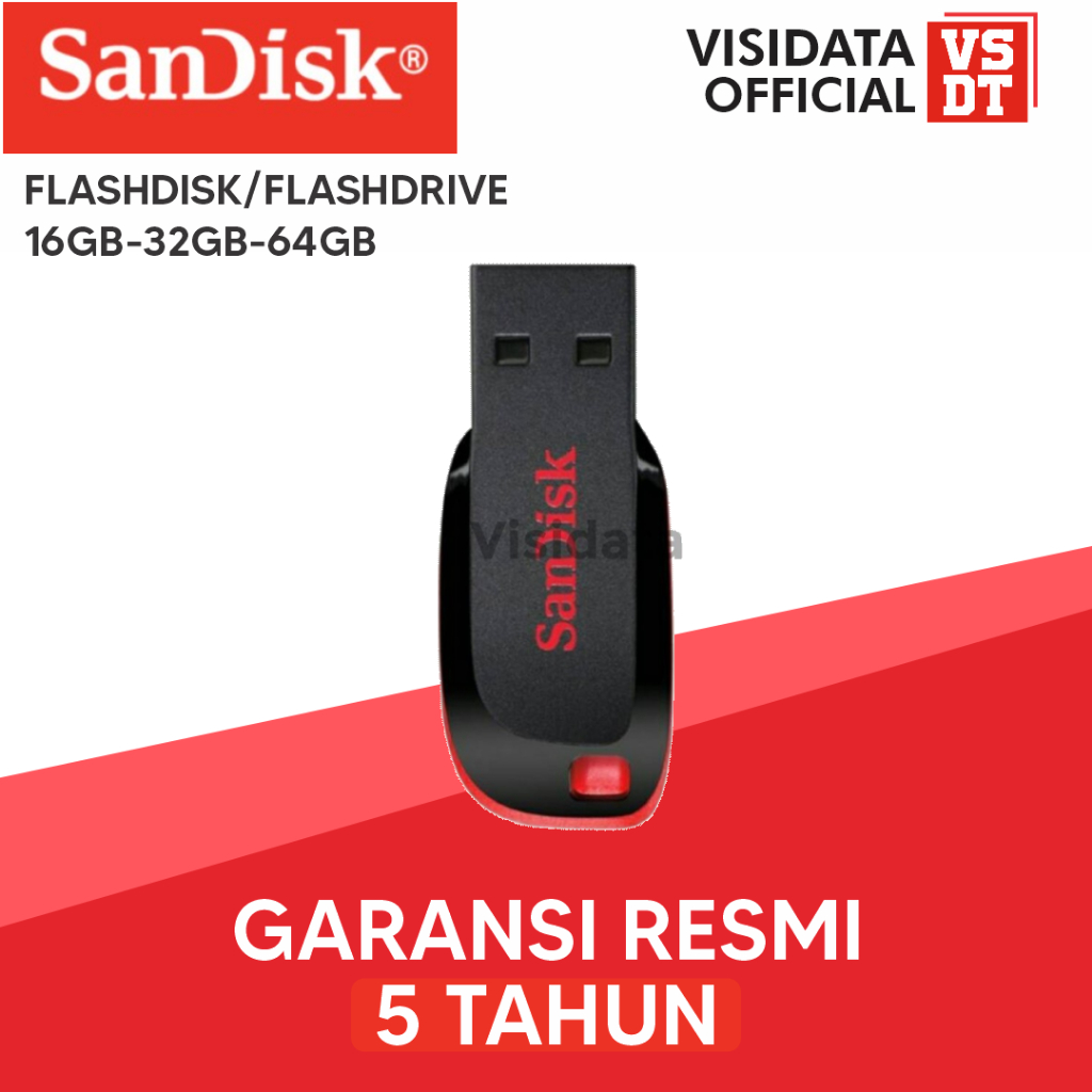 Sandisk Cruzer Blade USB 2.0 Flash Drive 16GB 32GB 64GB - Garansi Resmi 5 Tahun