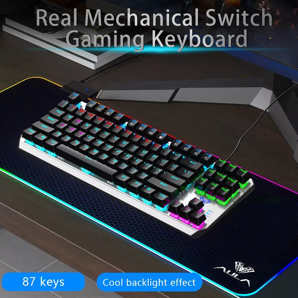 Keyboard Gaming Mechanical AULA F-2067 TKL - K-RGD Blue Switch-New RGB Rainbow LED - 87 Keys - Metal