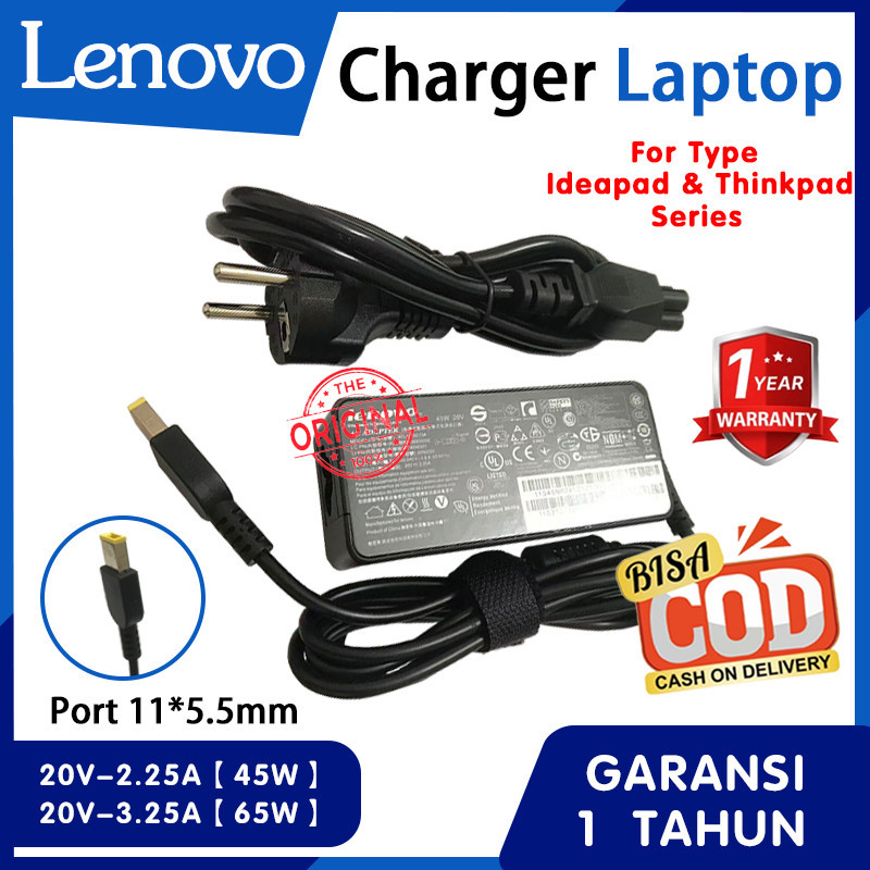 [GARANSI RESMI] Charger Lenovo ThinkPad Kuning Kotak 11x5.5 45W 65W - Untuk Seri X Y Z B E G S T, T440s X250 X260 X270,