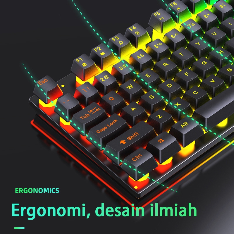 Kombo Keyboard & Mouse Gaming RGB – Keyboard Mekanikal 104 Keys dengan Backlight untuk PC, Laptop & Esports