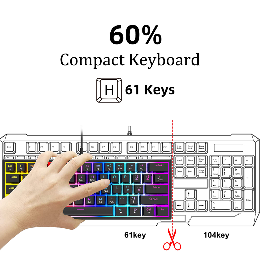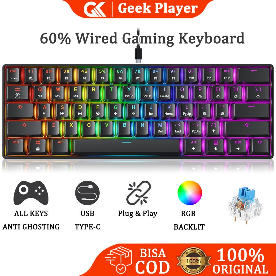 Keyboard Gaming Mechanical RGB Gaming Machinery Keyboard 60 PERSEN Layout Pluggable PBT Keycap Blue switch WiredKeyboard