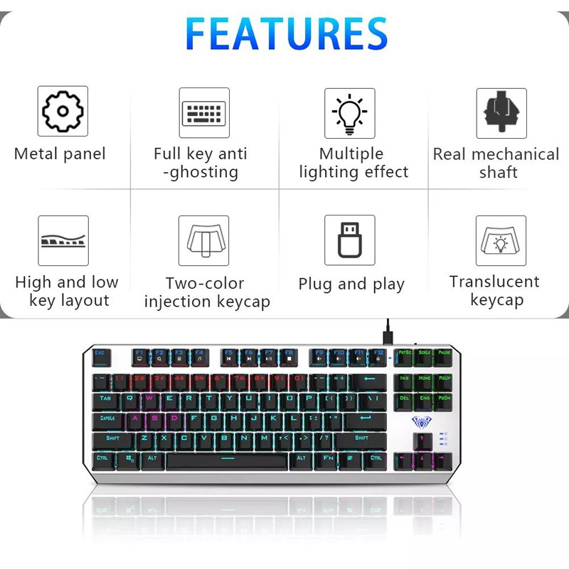 Keyboard Gaming Mechanical AULA F-2067 TKL - K-RGD Blue Switch-New RGB Rainbow LED - 87 Keys - Metal