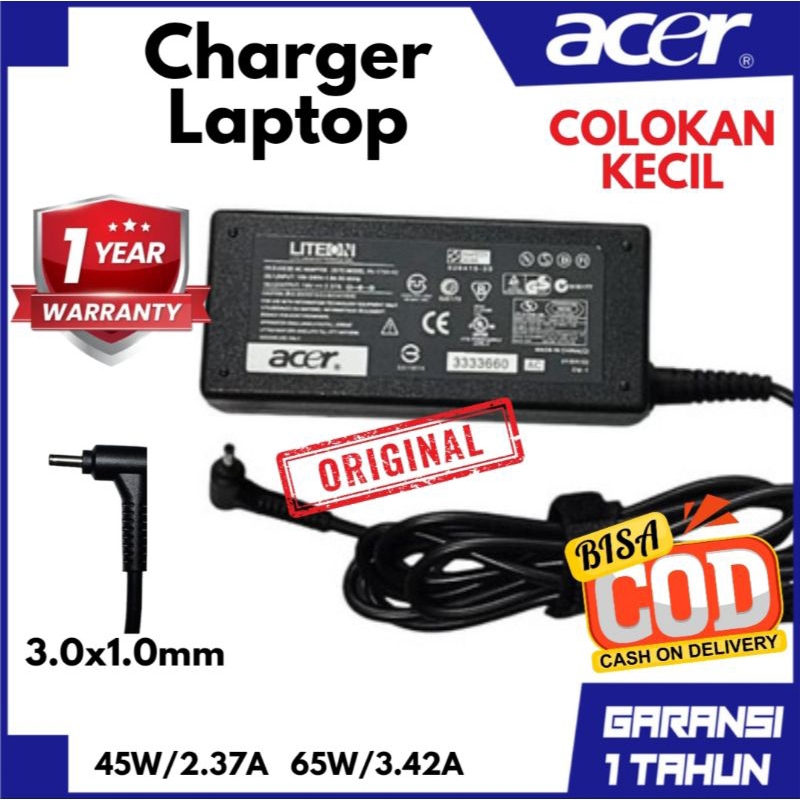 [GARANSI 1 TH] Charger Laptop ACER Original Small Plug Bulat Aspire 3 A314-22 A314-22G Aspire 5 A514-52 A514-52K A514-52G Swift 3 SF313-51 SF313-52 SF314-41 SF314-41G 45W 65W 2.37A 3.42A