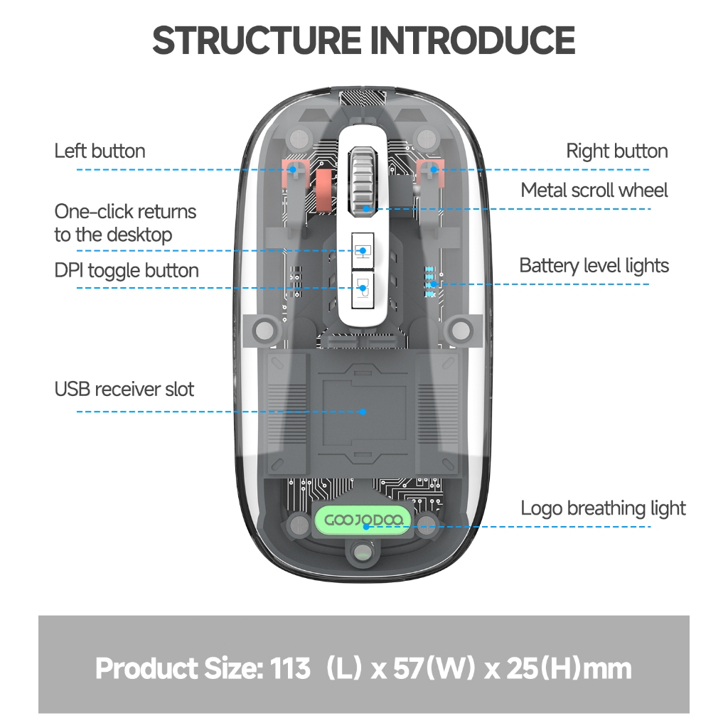 Goojodoq Bluetooth Mouse Wireless DPI for iPad laptop Rechargeable Silent Tablet Phone Android Desktop Gray