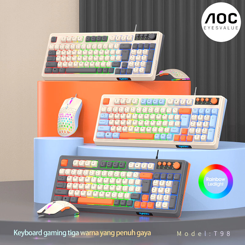 Keyboard Gaming K98 E-sports Jerman dengan Kabel, Switch Coklat, Senyap, Sensasi Mekanis, dan Nirkabel.