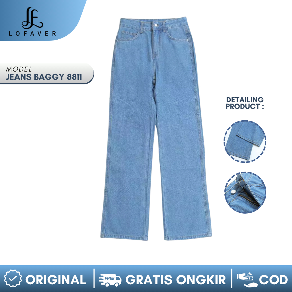 Lofaver - Highwaist Baggy 8811 Celana Panjang Jeans Wanita Hangout