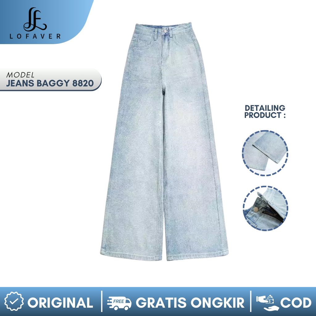 Lofaver - Highwaist Baggy 8820 Celana Panjang Jeans Wanita Hangout