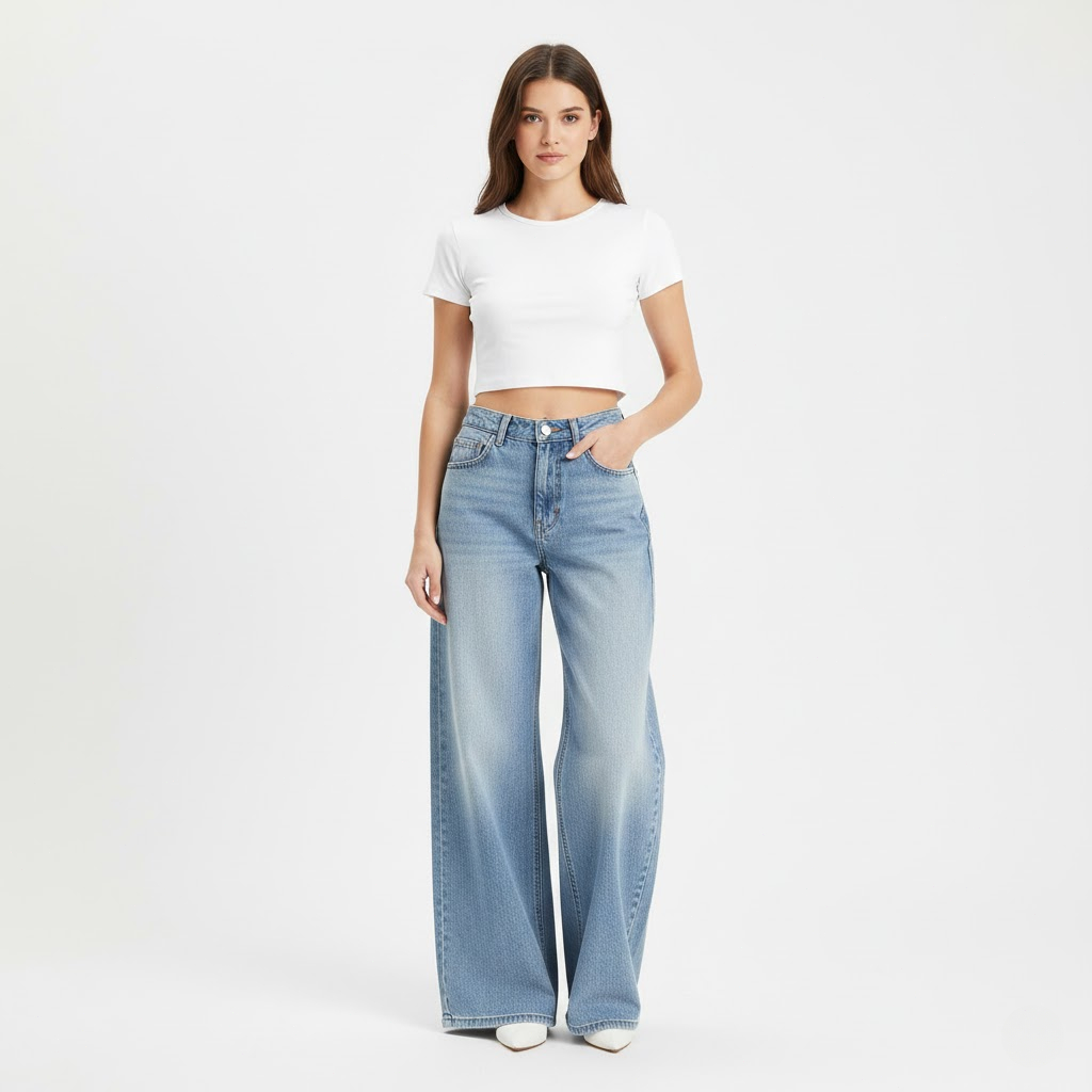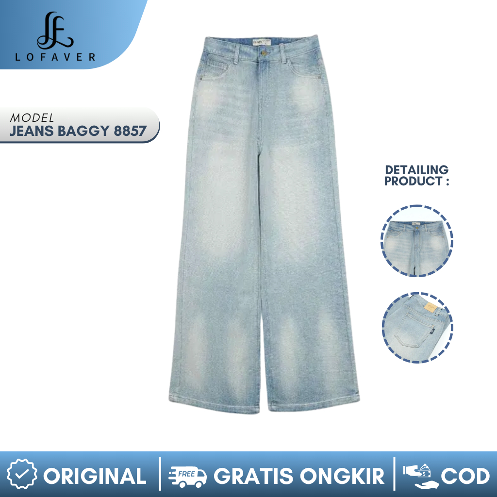 Lofaver - Highwaist Baggy 8857 Regular Straight Jeans Wanita Arctic Retro Blue