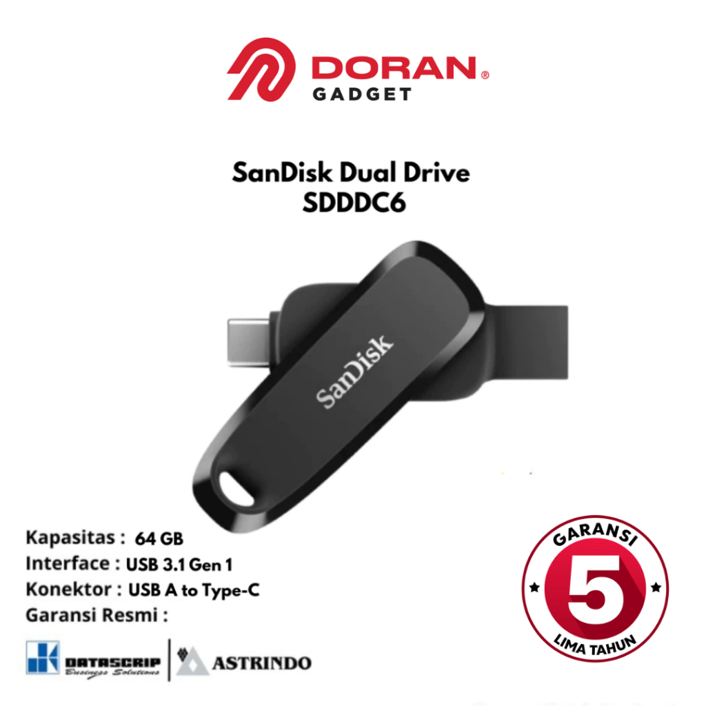 Flashdisk Flash Disk Drive OTG USB Type C 32GB 64GB 128GB 256GB 512GB | Sandisk Dual Drive SDDDC6 - Garansi 5 Tahun