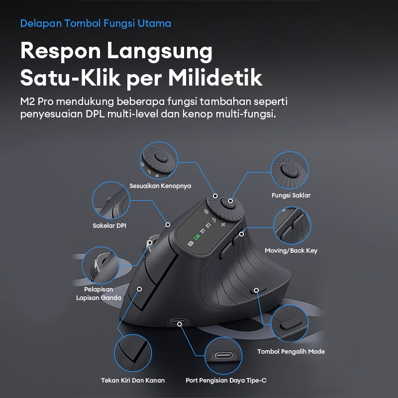 Monster M2 PRO 2.4G Mouse Wireless Bluetooth Vertical Ergonomic Dual Mode 2.4G+BT Four Dpi Switch 500mAh Large Battery
