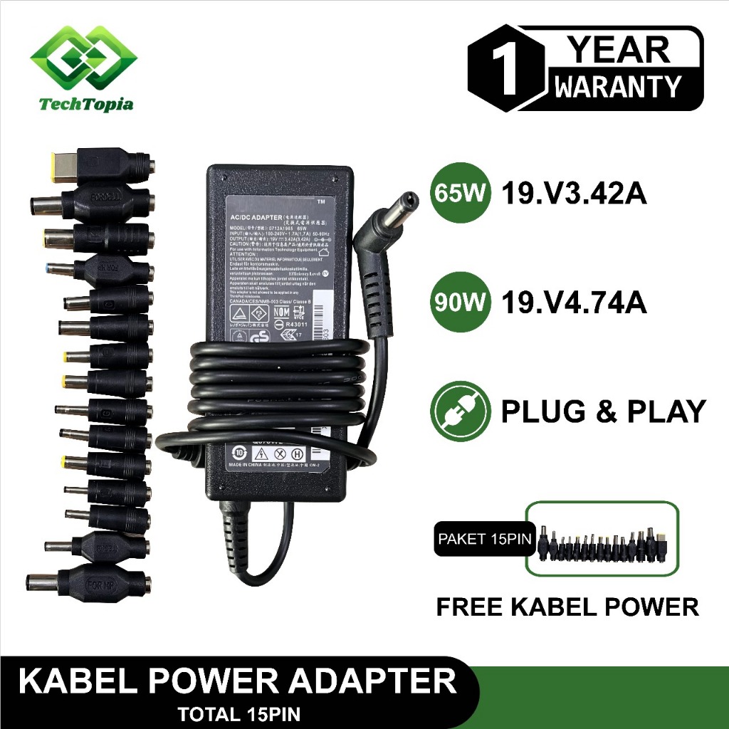 TechTopia Adaptor Charger Laptop Universal DC Connector Pengganti Charger AC untuk Berbagai Tipe