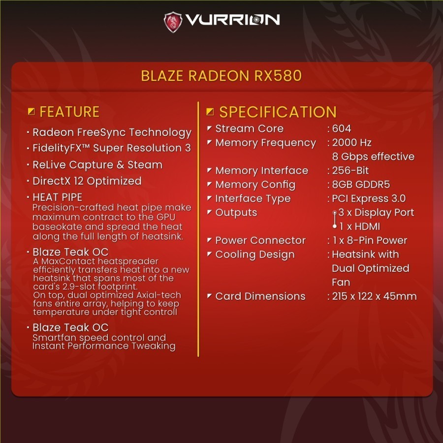 VGA RX580 VURRION RX 580 8GB GDDR5 256-BIT
