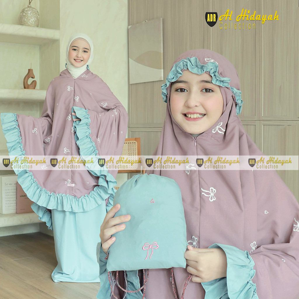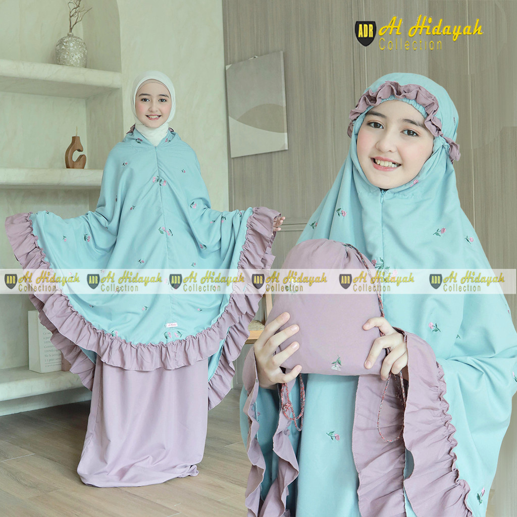 Mukena Anak Bordir Timbul Resleting Dagu 2 In 1 Katun Premium 5 6 7 8 9 10 11 12 13 14 15 Tahun Mukenah Tanggung Mewah S