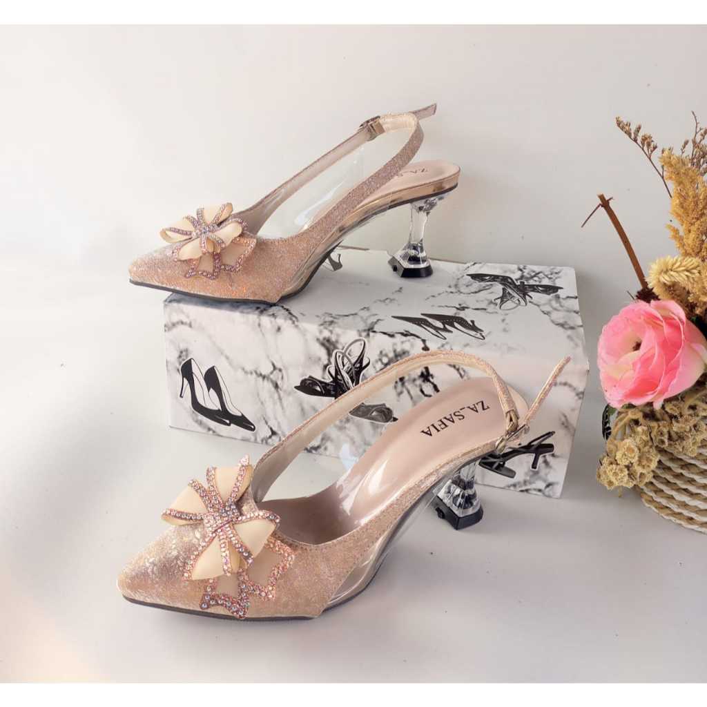 ZASAFIA SN34 - Heels Wanita Elegan Hak Kaca 7 cm Pita Glitter