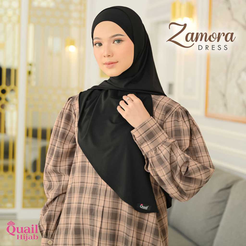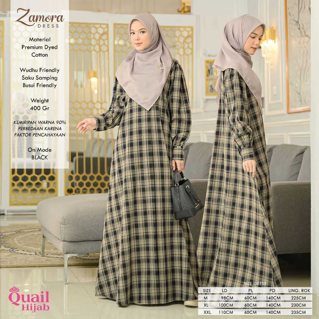 ZAMORA Dress Original Quail Hijab Bahan Premium Dyed Cotton Motif Kotak-kotak Baju Gamis Panjang Wanita Busui Friendly W