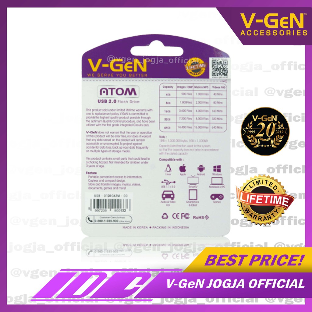Flashdisk V-GeN Atom 4GB, 8GB, 16GB, 32GB, 64GB, 128GB Original