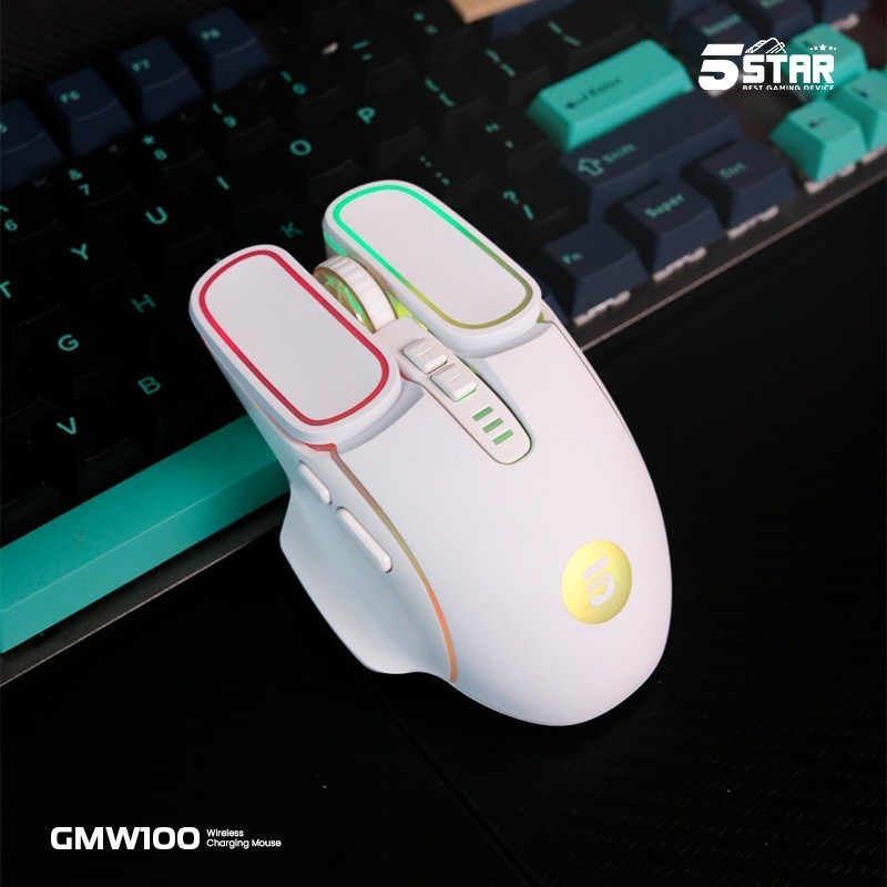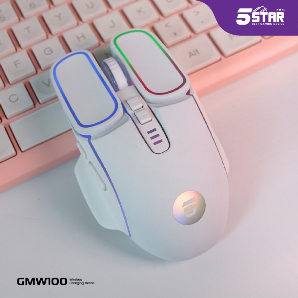 Mouse Wireless Gaming Rechargeable Baterai Type-C Fast Charging 1600DPI RGB Light GMW100 White