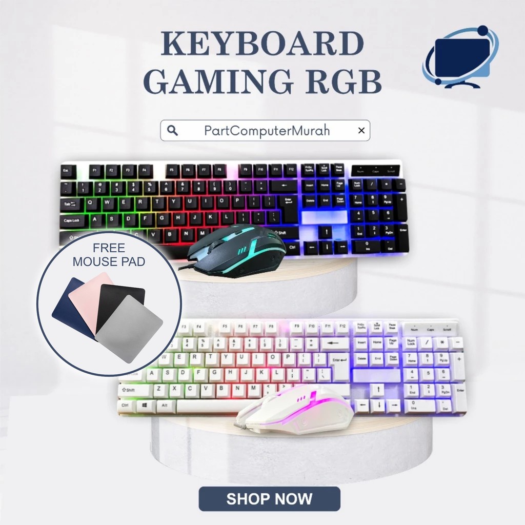Keyboard & Mouse Gaming RGB LED Backlit Semi Mechanical USB Kabel Untuk Laptop PC Desain Ergonomis