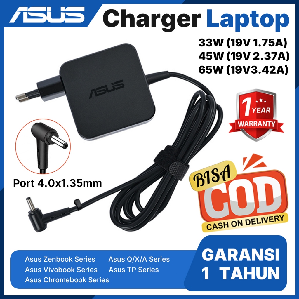 Original Charger Laptop ASUS VivoBook Pin Bulat Kecil 33W/45W/65W - Sesuai untuk ASUS X200CA, X453M, X441, A442U, A456U, A412, A409, A509, A516, A407, E410M, E410MA