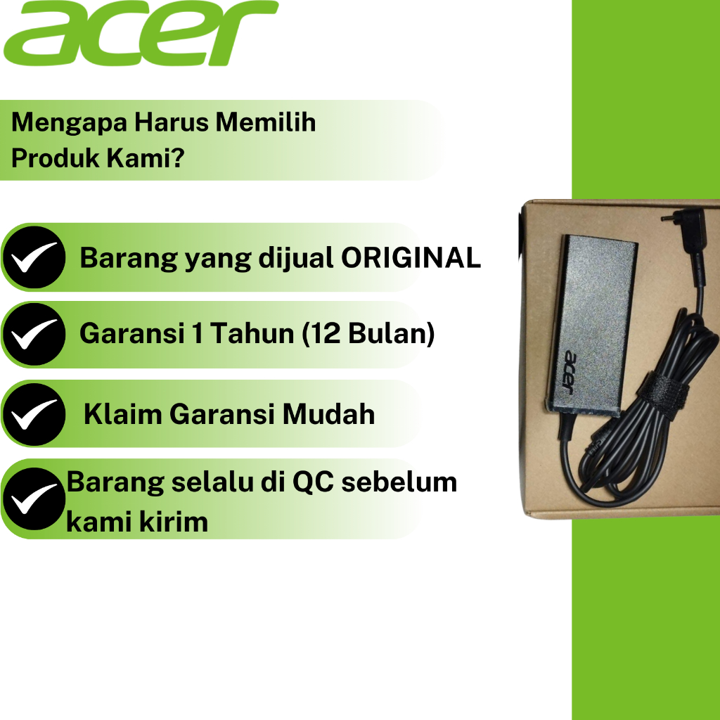 [1 Tahun GARANSI] Charger Adapter Laptop ACER Original SMALL Plug Pin Bulat KECIL Aspire 3 Aspire 5 Swift 3 2.37A 45W 3.42A 65W EMBS