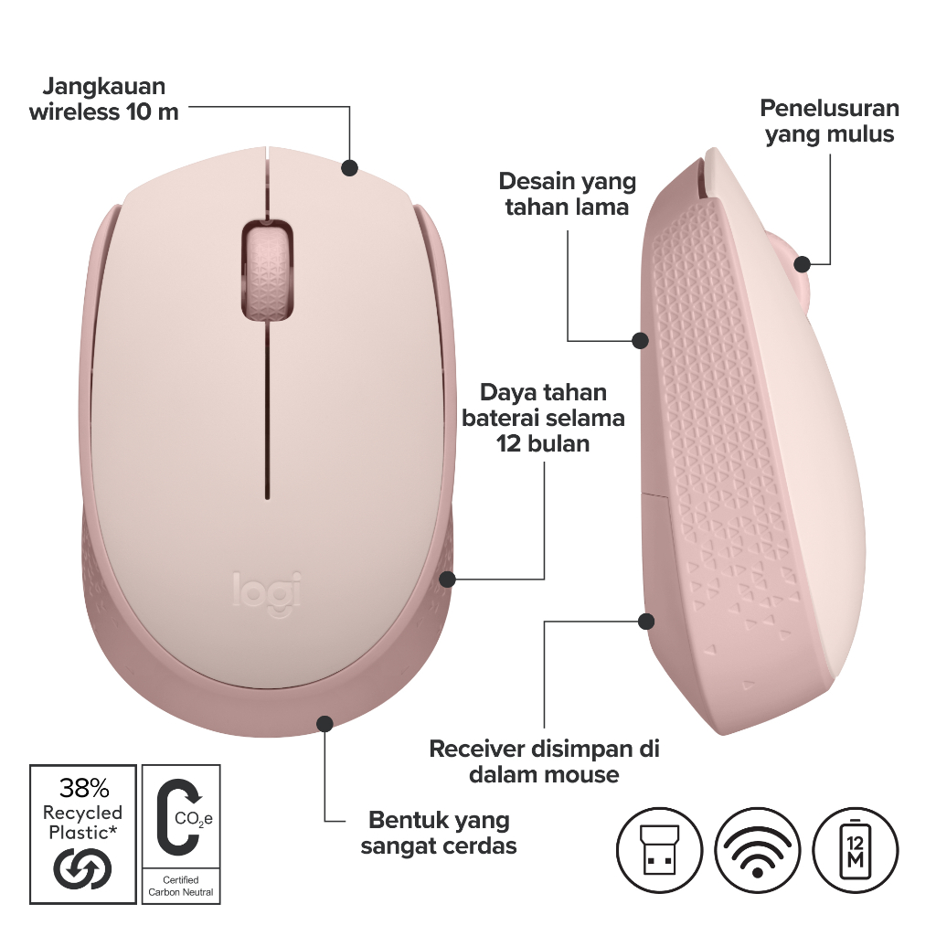 Logitech M171 Mouse Wireless untuk Windows, Mac, ChromeOS - Rose