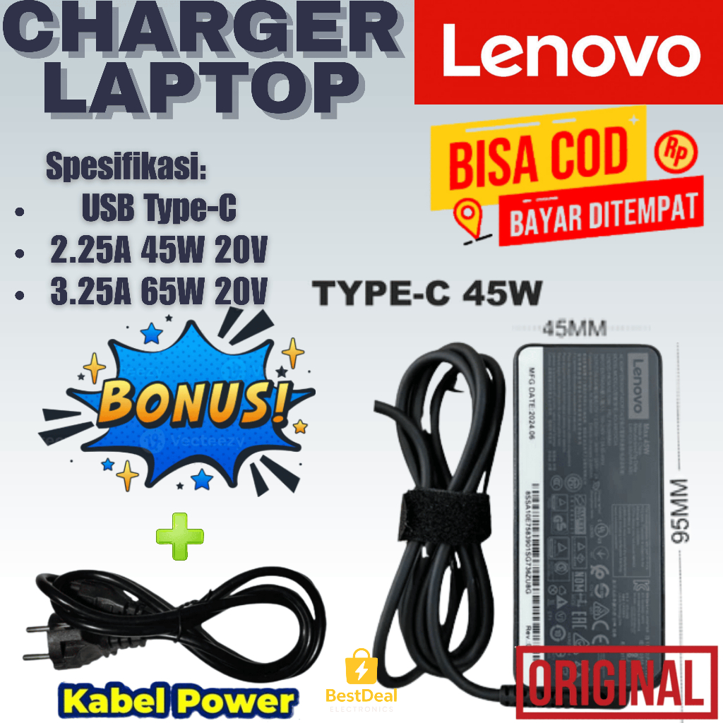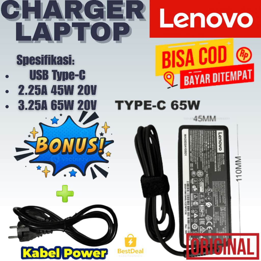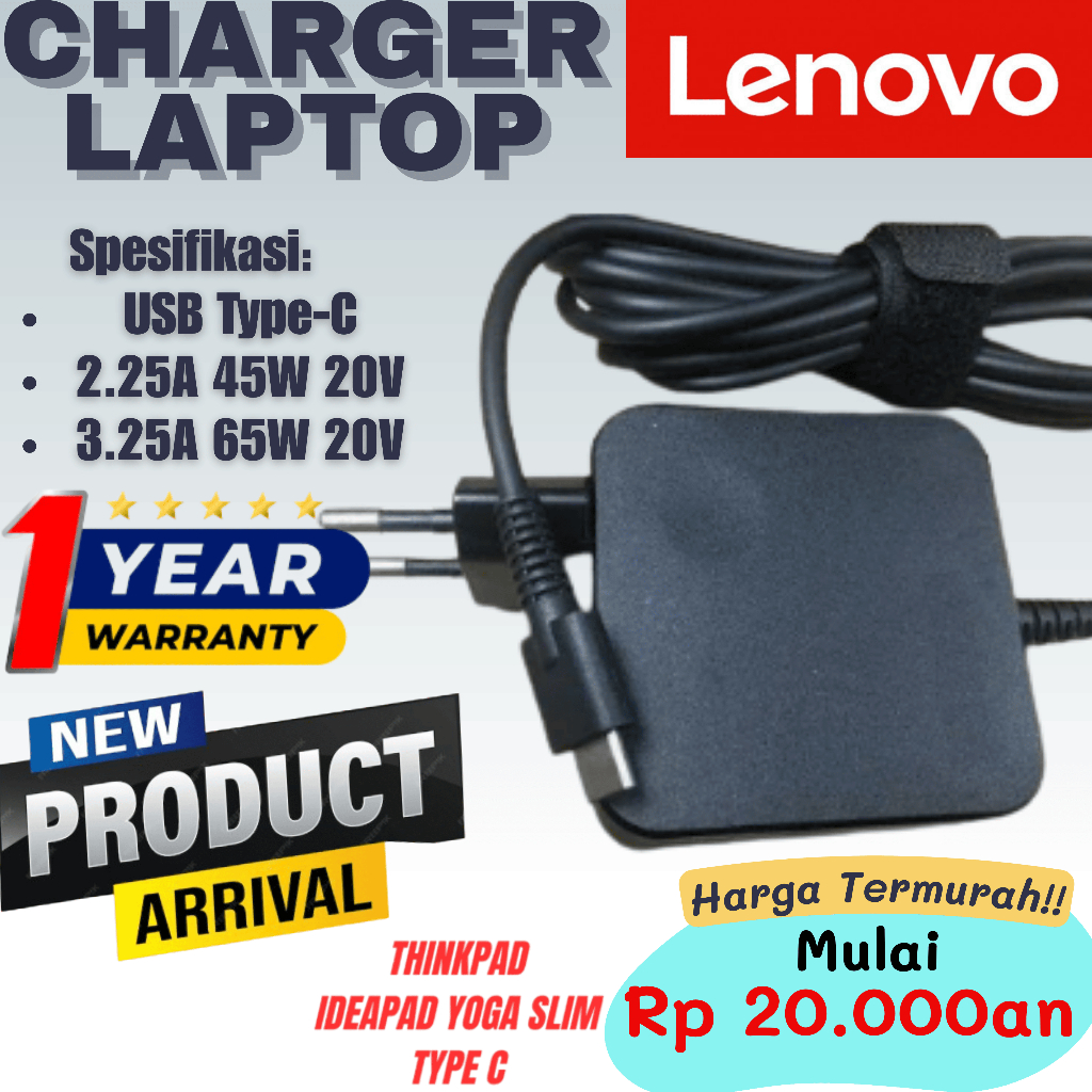 HARGA MULAI 20RIBUAN + GARANSI 1 TAHUN Adaptor Charger Laptop Thinkpad Ideapad Type C ORIGINAL